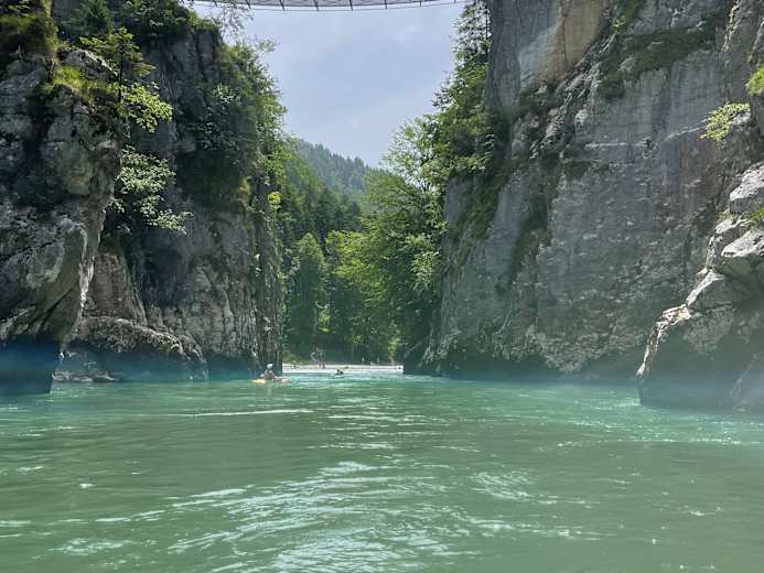 In der Entenlochklamm sind häufig Kanufahrer unterwegs. Mit etwas Glück kann man sie von der Hängebrücke in der Klamm beobachten.