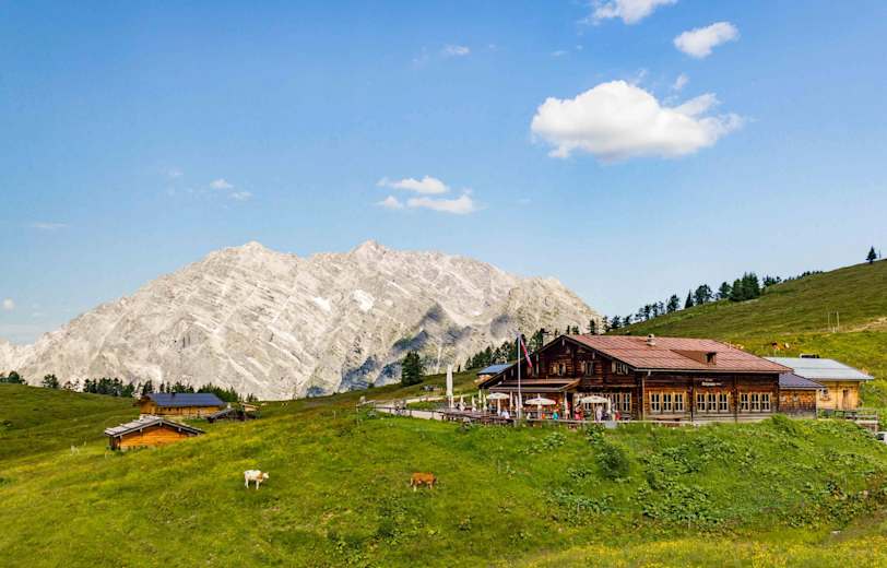 Danach wird es zwar flacher, dafür muss man aber eine Geröllhalde queren. Hat man dies geschafft, folgt man dem angenehm verlaufenden Steig weiter durch den Wald aufwärts. Nach rund 2 Stunden tritt man aus dem Wald auf die Hochfläche und hat kurz darauf die Regenalm erreicht. Fast eben und aussichtsreich sind die letzten Meter hinüber zur Gotzenalm.