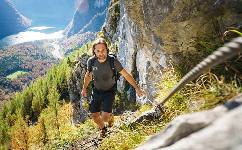 Der Rinnkendl-Seig ist ein toller, abwechslungsreicher, teilweise seilversicherter Steig, der von St. Bartolomä am Königsee in Berchtesgaden nach Kühroint und zur Kührointhütte führt. Trittsicherheit und Schwindelfreiheit sind erforderlich, dafür genießt man aber umwerfende Tiefblicke auf den Königssee.