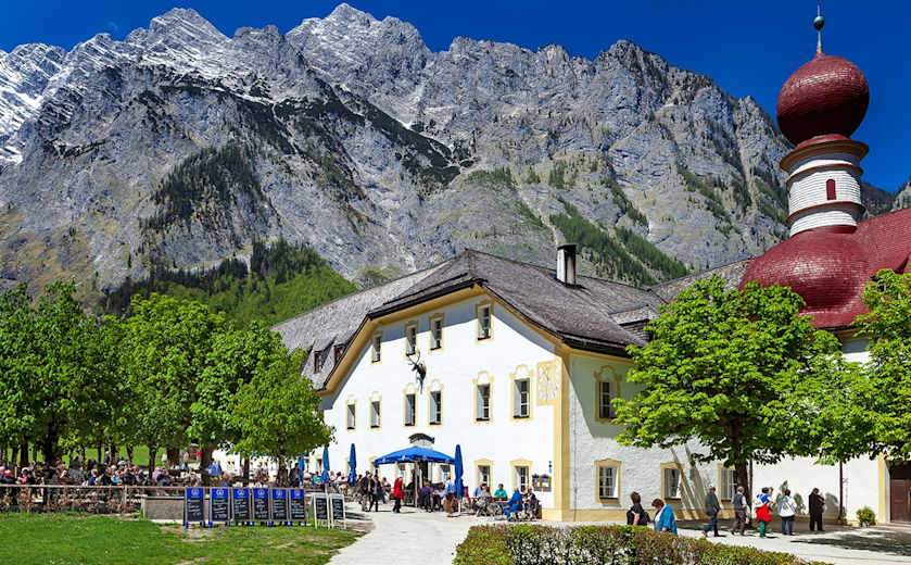 Vom Parkplatz Königssee in Richtung See zur Schiffabfahrt. Mit dem Schiff über den Königssee nach St. Bartholomä und hinter der Kirche dem breiten Wanderweg bis in eine Bucht folgen. Hier auf dem Weg 443 anfangs in weiten Kehren durch den steilen Bergmischwald aufsteigen. Oberhalb der Waldgrenze wendet sich der Steig nach rechts und überwindet mit einigen versicherten Passagen die Felsbereiche. Nach einer langen, ausgesetzten Querung und einem letzten Anstieg durch eine Rinne erreicht man die Hochfläche. Von bis zur bewirtschafteten Kührointhütte. Der weitere Abstieg führt durch den Wald zur Grünsteinhütte und von dort hinab nach Königssee.