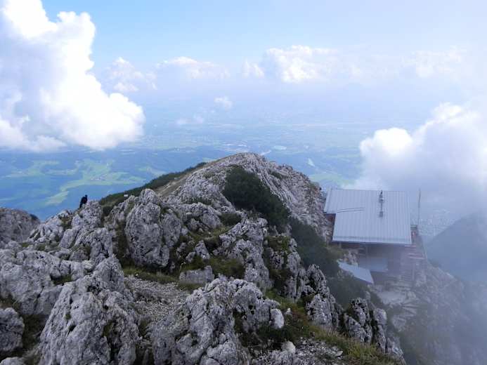 Man passiert einen Vorgipfel und steigt weiter aufwärts bis zum Gipfelkreuz auf dem Hochstaufen. Wenige Meter unterhalb steht das Reichenhaller Haus, das zur Einkehr einlädt. Auch übernachten kann man hier oben.