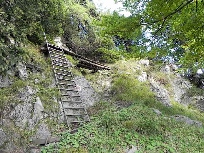 Von hier wandert man über freies Gelände bis zum Bayerischen Stiegl. Hier trifft man auf den Anstiegsweg von Inzell/Adlgaß. Nun wird das Gelände steiler. Der teilweise seilversicherte Steig führt über Felsgelände aufwärts.