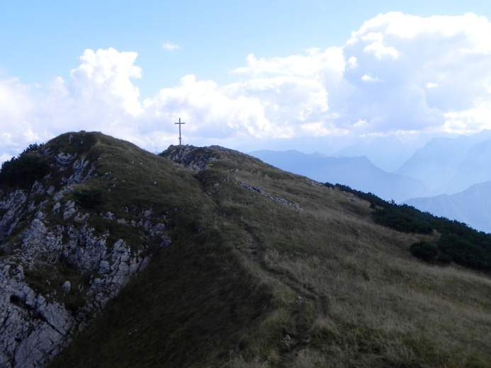 Der Übergang zum Gamsknogel weist ein paar felsigere Passage auf, die mit einem Drahtseil versichert sind. Nach der Gipfelpause geht man über steileres, felsigeres Gelände bergab zu Wiesengelände. Hier erreicht man eine Wegverzweigung. Hier geht man geradeaus zur Kohleralm. Nach der Alm folgt man einem Pfad in den Wald hinein und an der nächsten Verzweigung nach links abwärts.