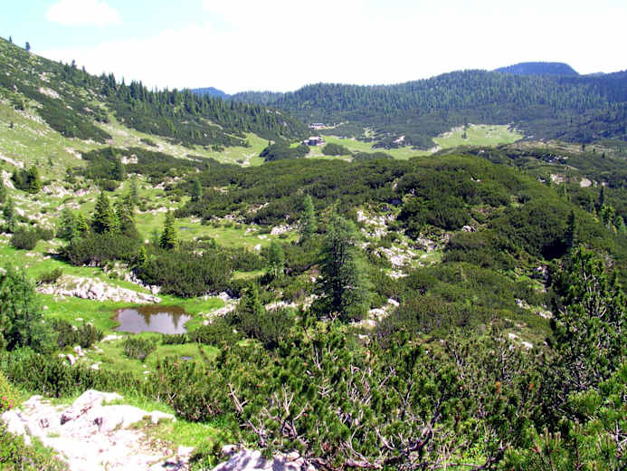 Vom Parkplatz bzw. der Bushaltestelle an der B305 folgt man dem Weg mit der Nummer 470 und damit auch einem Teilstück der Via Alpina - Violetter Weg. Anfang steht es gemütlich auf breitem Forstweg dahin - ideal, um sich einzugehen. Bald aber verengt sich der Steig und man steigt in vielen Serpentinen am sogenannten Wachterlsteig durch den Wald aufwärts. Geschickt schlängelt sich der Steig durch den Wald und führt durch Felsdurchläsee bis hinauf auf eine Höhe von 1.455 m. Hier nun deutlich weniger steil geht es entlang der Grenze des Truppenübungsplatzes (ganzjähriges Betretungsverbot) weiter auf dem Weg 470. Zuletzt leitet die „Saugasse“ über das zunehmend karstige Plateau bis zur Neuen Traunsteiner Hütte, die ganz plötzlich und unerwartet vor einem auftaucht und überraschend groß ist.