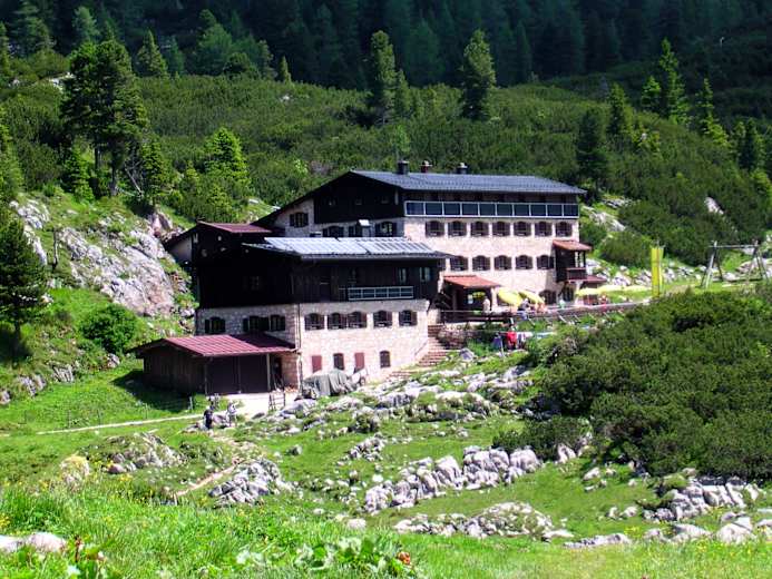 Die Neue Neue Traunsteiner Hütte ist ein idealer Stützpunkt für weitere Touren auf der Reiter Alm inklusive Gipfelbesteigungen.