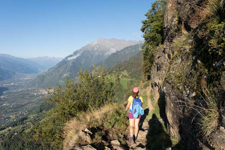 Die Mutspitze liegt hoch über Meran. Aussichtsreich führt der versicherte Vellauer Felsenweg zur Bergstation Hochmuth. Über den Hans-Frieden-Weg steigt man wieder zurück zur Leiteralm und hinunter nach Vellau. Die Tour ist anspruchsvoll, sehr aussichtsreich und auch sehr sonnig.