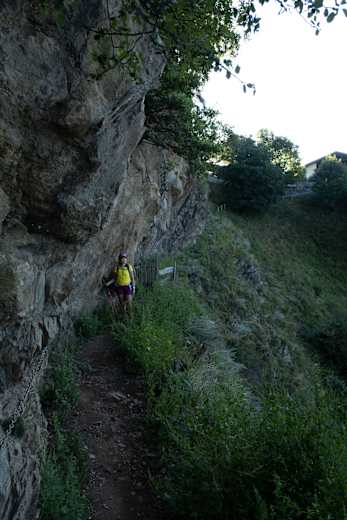 Mit dem Lift schwebt man von Algund nach Vellau. Man geht nach rechts in den Ort und folgt der Markierung Nr. 22 hinauf zum Velauer Felsenweg.