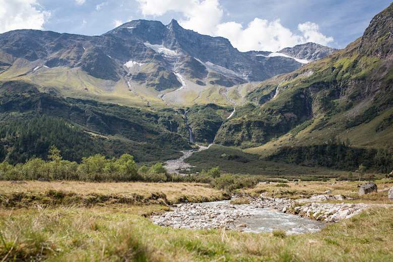 Am Wasserfallweg kann man auch immer wieder einen Blick auf den Hohen Sonnblick genießen. Foto: TVB-Rauris, Florian Bachmeier