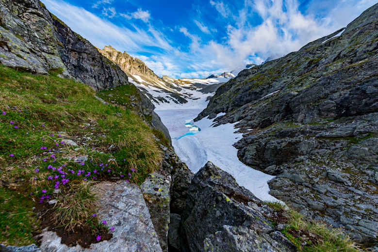 Letzte Schneereste im Frühjahr am Pizol Foto: Pizolbahnen AG