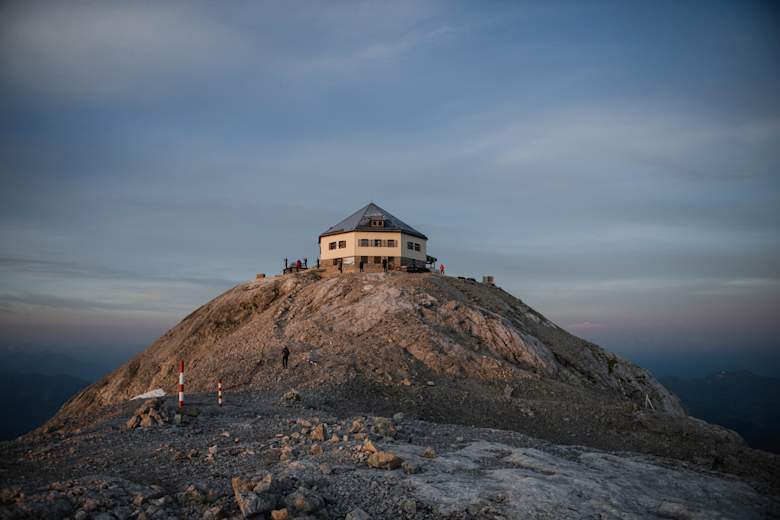 Entlang des südlich gelegenen Bratschenkopf (2.857 m) geht es nun immer Richtung Hochkönig (2.941 m). Es sind noch 2,5 Kilometer Wegstrecke und rund 200 hm zu überwinden. Kurz vor dem Gipfel ist eine mit Stahlseilen gut versicherte Eisenleiter zu besteigen, bevor man zum Tagesziel, dem Matrashaus, gelangt.