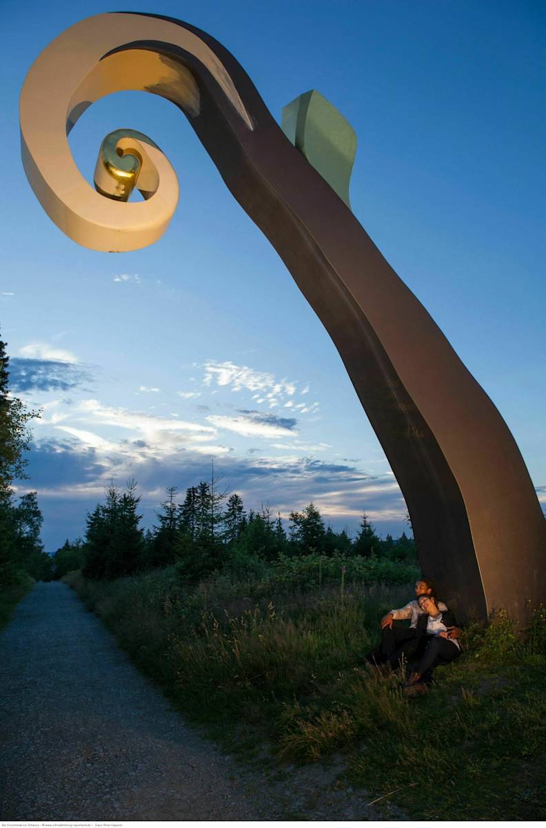 Vom Zentrum in Winterberg geht es vorbei am Wahrzeichen der Stadt, der St. Georg Schanze, und vorbei an den zahlreichen Schiliften und Pisten in Richtung Kahler Asten.