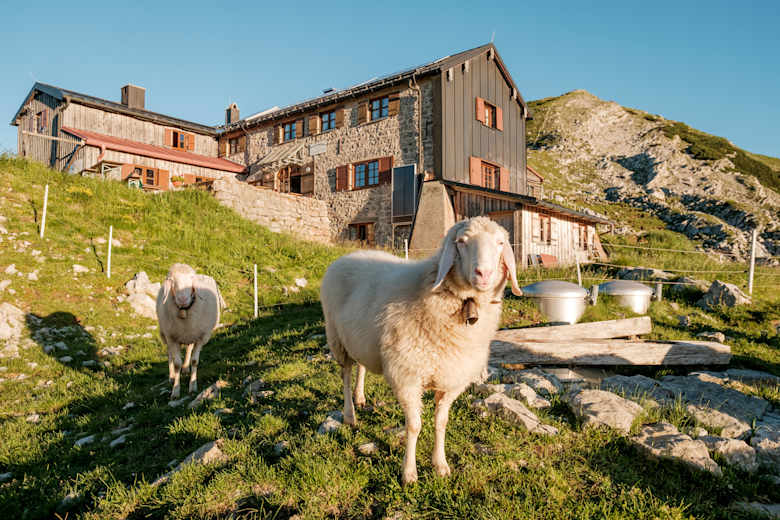Neugierige Bewohner: Die hauseigenen Schafe beschnuppern Besucher. Foto: Hans Herbig, Bergwelten 02/2018
