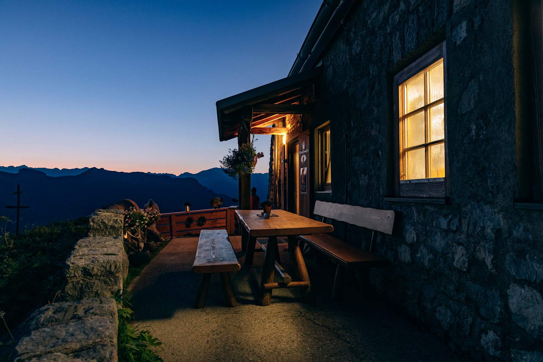 - Die Fassade des Prinz-Luitpold-Hauses strahlt trotz dem kalten Stein Gemütlichkeit aus.Foto: Martin Erd, Bergwelten Magazin 04-2020Tagsüber sitzt man entspannt auf der Sonnenterrasse bei Kaffee und Kuchen.Foto: Martin Erd, Bergwelten Magazin 04-2020Bei der Eröffnung 1881 hatten im Prinz-Luitpold-Haus nur zwölf Menschen Platz. Heute können in der Hütte mehr als 250 Gäste schlafen.Foto: Martin Erd, Bergwelten Magazin 04-2020Es wird bald Nacht: Die Sonne geht unter, die Lichter im Prinz-Luitpold-Haus gehen an.Foto: Martin Erd, Bergwelten Magazin 04-2020