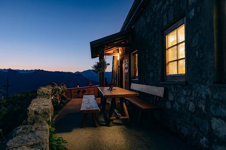 Es wird bald Nacht: Die Sonne geht unter, die Lichter im Prinz-Luitpold-Haus gehen an. Foto: Martin Erd, Bergwelten Magazin 04-2020 Bildergalerie (4)