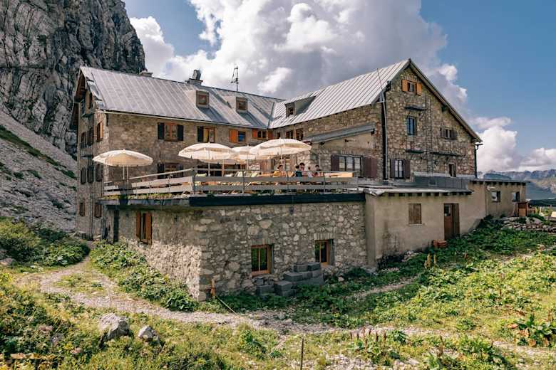Die Fassade des Prinz-Luitpold-Hauses strahlt trotz dem kalten Stein Gemütlichkeit aus. Foto: Martin Erd, Bergwelten Magazin 04-2020