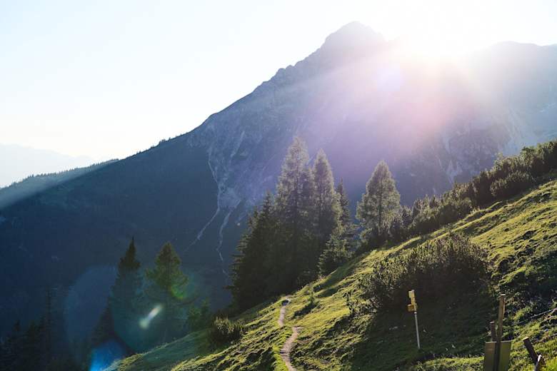 Hier zweigt ein schöner Wanderweg von dem breiten bisher gegangenen Weg ab und führt entlang des linken Randes der Almflächen aufwärts zur Söldenhütte auf 1.531 m.