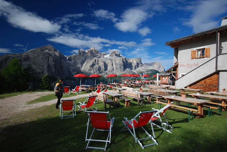 Die Ütia Col Pradat (2.038 m) liegt direkt an der Bergstation der Seilbahn Col Pradat im Dolomiten Naturpark Geisler-Puez. Von der Terrasse hat man einen wunderbaren Blick auf den gegenüberliegenden Sellastock. Oberhalb der Hütte erhebt sich der mächtige Sassongher, der auf einem anspruchsvollen Steig erreicht werden kann.