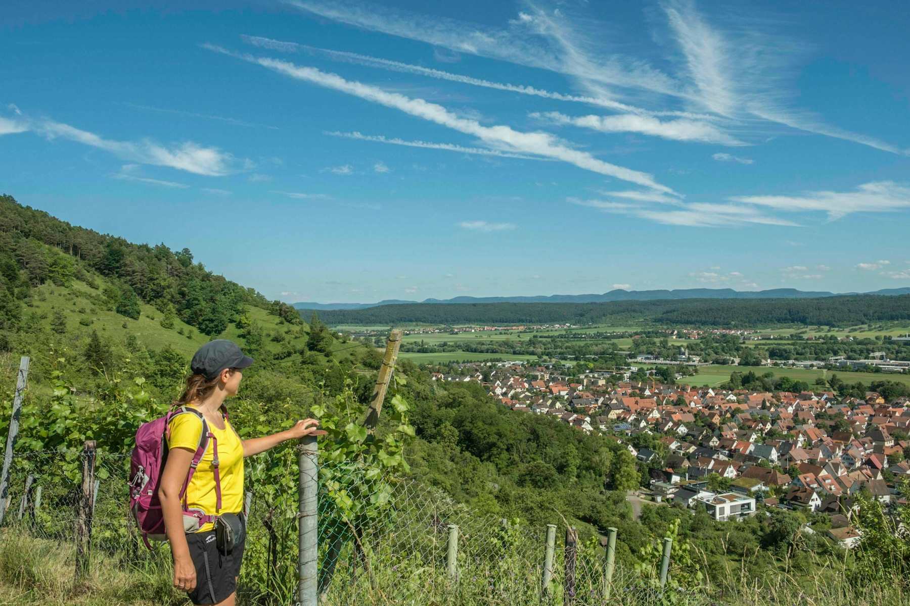 Der abwechslungsreiche Rundweg auf maximal 474 Höhenmeter bietet wunderschöne Ausblicke über das Neckartal bis zur Schwäbischen Alb.
