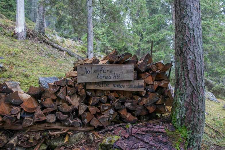 Vom Parkplatz wandert man auf der Straße in Richtung des Campingplatzes. Kurz vor dem Campingplatz folgt man der Straße nach rechts hinauf. Wenig später biegt nach links der Steig zur Loreahütte (2.022 m) ab. Der gut angelegte Weg führt im steilen Wald aufwärts. An einer kleinen Lichtung wird der Weg kurz flacher, so dass man ein wenig durchschnaufen kann. Im Wald zieht die Steilheit aber gleich wieder an. Schließlich verlässt man den Wald und geht in eine Latschenzone. Man kommt zum Denkmal der Sektion Isartal, von dem man einen ersten schönen Ausblick genießt. Nach einer kleinen Verschnaufpause wandert man weiter zu einer Wegverzweigung, hält sich dort links und spaziert über schöne freie Wiesen hinauf zur kleinen Loreahütte (2.022 m), die auf einem phantasischen Aussichtsplatz steht.