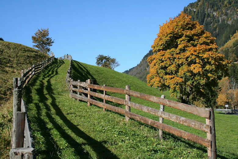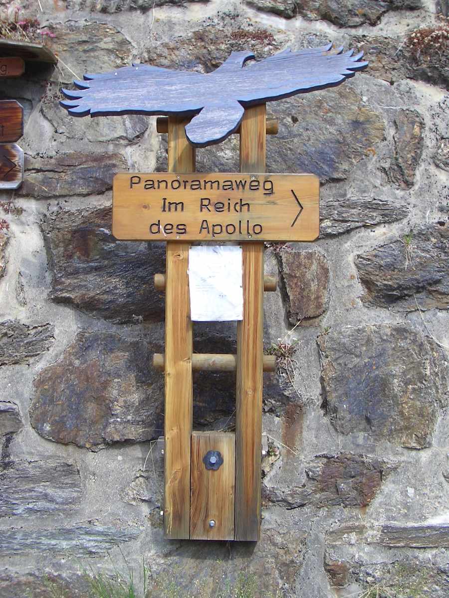 Über die Ratzeller Bergwiesen geht es nun wieder bergab zu den Mösern, wo man der Beschilderung „Im Reich des Apollo“ folgt. Dieser Lehr‐ und Panoramaweg ist dem Apollofalter gewidmet, einem seltenen, streng geschützten Tagfalter, der im Nationalpark Hohe Tauern beheimatet ist.