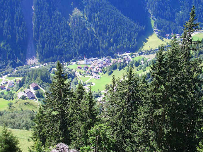 Der Weg führt weiter in den idyllischen Weiler Außeregg, wo man in die Gemeindestraße einbiegt. Nun sind es noch ca. 100 Höhemeter bis in das Etappenziel, das Kirchdorf von St. Veit, Mittelpunkt der höchstgelegenen Gemeinde Osttirols.