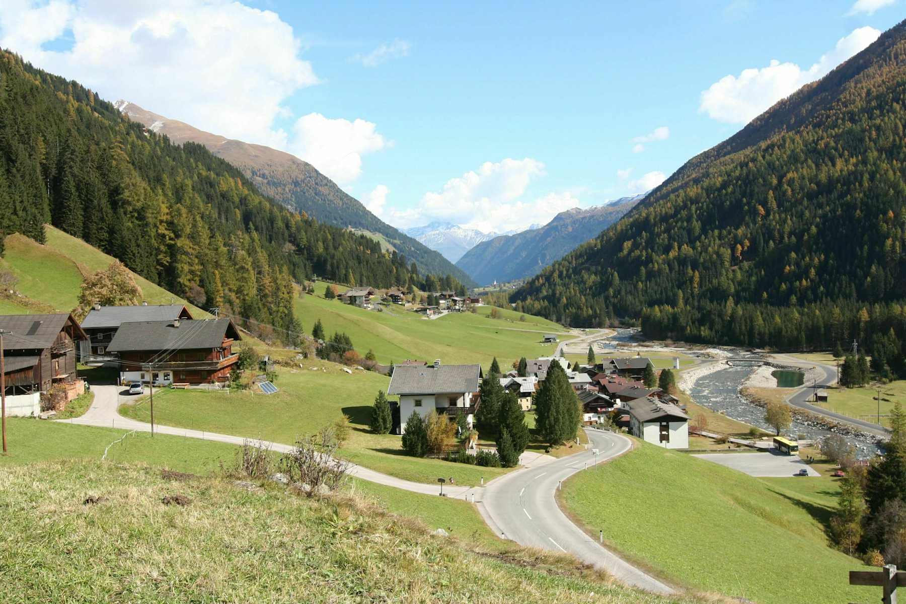 Über den Felbertauern bis Matrei in Osttirol und weiter bis Huben, wo die Straße ins Defereggen abzweigt.