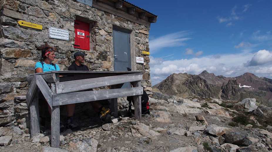 Die Kieler Wetterhütte (2.809 m) ist eine offene Notunterkunft am anspruchsvollen Hoppe-Seyler-Weg in der Verwallgruppe. Sie liegt an der Verwallrunde zwischen Niederelbehütte (2.310 m) und Darmstädter Hütte (2.384 m). Am schnellsten ist die Hütte von der Diasalpe bei Kappl zu erreichen.