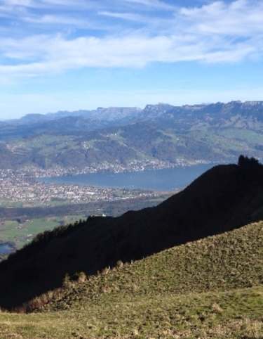 Die Aussicht ist unvergleichlich: Unzählige Vor- und Hochalpengipfel vom Titlis bis zum Mont Blanc begrenzen den Horizont. Über dem Mittelland sind die Höhenzüge von Jura, Vogesen und Schwarzwald auszumachen.