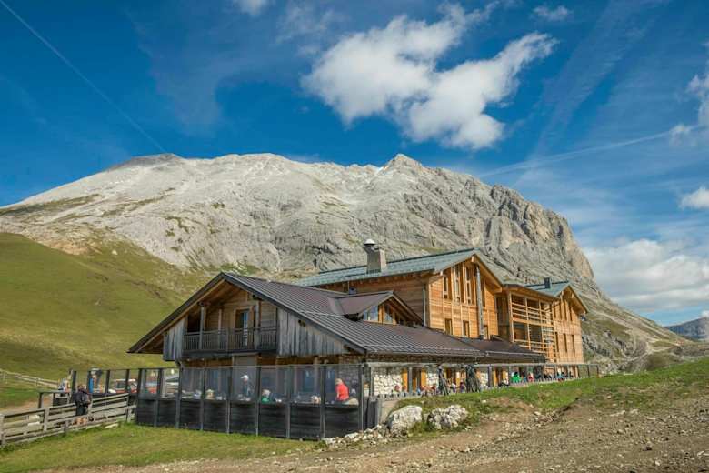 Die Plattkofelhütte (2.297 m) in den Südtiroler Dolomiten liegt aussichtsreich am Fuße der Südabdachung des Plattkofels. Sie ist von vielen Seiten auf guten Wegen zu erreichen. Der schnellste Zustieg erfolgt von der Seiser Alm, der größten Hochalm Europas.