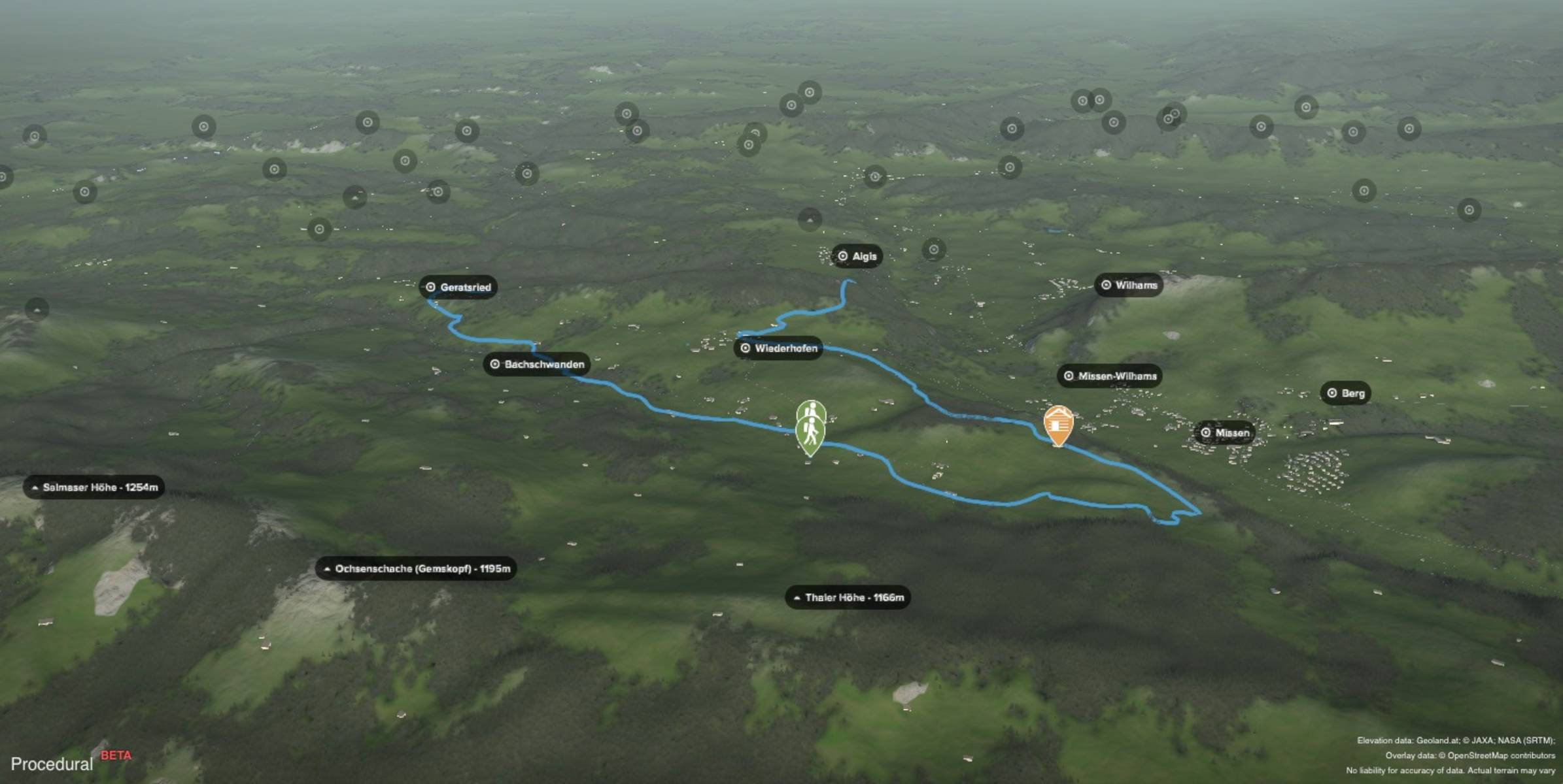 Wiederhofen im Allgäu ist ein kleines Dorf inmitten eines stillen, abgeschiedenen Hochtales zwischen Missen und dem langen Grat der Thaler Höhe in den Allgäuer Alpen. Die Jugetach schlängelt sich hier durch eine hübsche, almwirtschaftlich geprägte Landschaft aus offenen Wiesen, kleinen Wäldchen und Mooren, die man auf dieser abwechslungsreichen Tour erkundet.