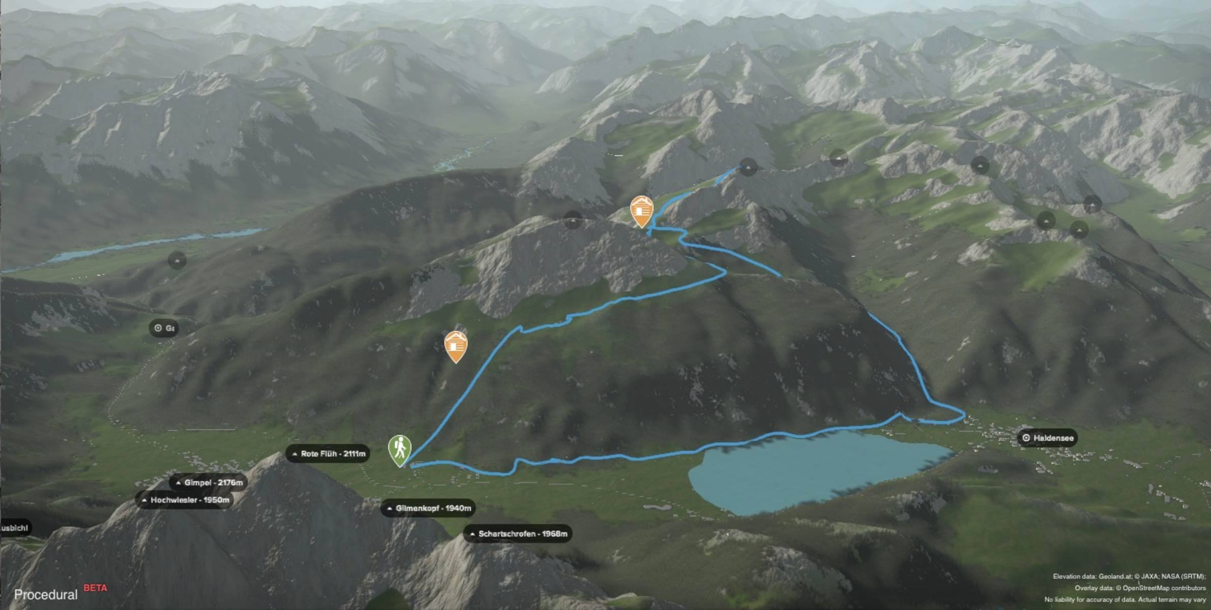 Die schöne Tour wird abgerundet durch freie Ausblicke auf die Klettergipfel der Tannheimer Berge, drei gemütliche Alphütten, den Strindenbach sowie den Uferweg entlang des kristallklaren Haldensees (im Sommer ein beliebter Badesee – trotz der recht hohen Lage auf über 1.100 m Meereshöhe).