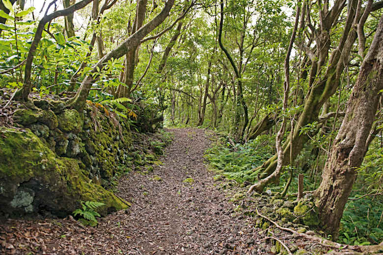 Man startet diese Wanderung am Miradouro da Terra Alta, der einen traumhaften Panoramablick auf die Nachbarinsel São Jorge bietet. 70 m westlich davon führt ein alter, steiniger Waldweg rechts in den dichten Wald hinein. Die alte Pflasterung des einstigen Hauptverbindungswegs im Norden ist stellenweise noch gut erhalten.