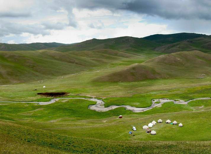 Kirgisisches Yurtenlager am Son-Kul Foto: Clearskies