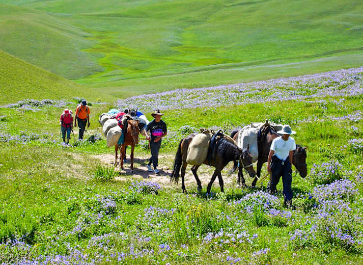 Aufstieg zum Chalgyz-Karagai, dem letzten Pass vor dem Son-Kul. In Zentralkirgistan werden die Lasten auf Pferderücken transportiert. Foto: Clearskies Bildergalerie (6)