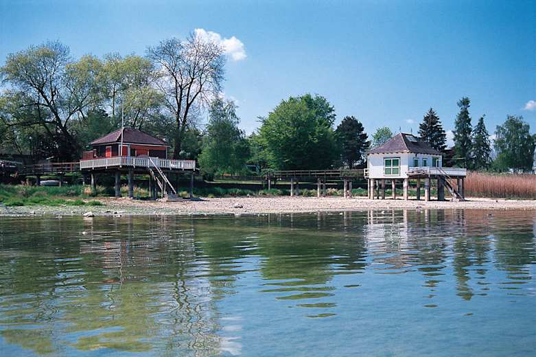Beim Bahnhof in Kesswil, dem sogenannten Rosendorf am Bodensee, überschreitet man das Bahngleis zum Seeweg Richtung Romanshorn. Im Wasser auf Stelzen stehende Wochenendhäuschen säumen den behaglichen Bodensee-Rundwanderweg mit zum Verweilen einladenden Strandabschnitten. In der Ferne, auf deutscher Seite, wölbt sich der Gehrenberg auf. Uttwil, 398 m, ist das erste Zwischenziel. Auffällige Fachwerkfassaden lenken den Blick auf sich.