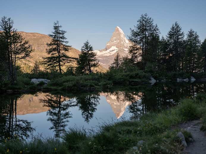 Stellisee mit Matterhornspiegelung Foto: Zermatt Tourismus, Quelle: Pascal Gertschen