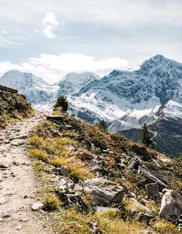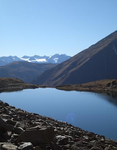 Oben angekommen erlebt man atemberaubende Fernsichten über den Similaun bis hin zur Texelgruppe.