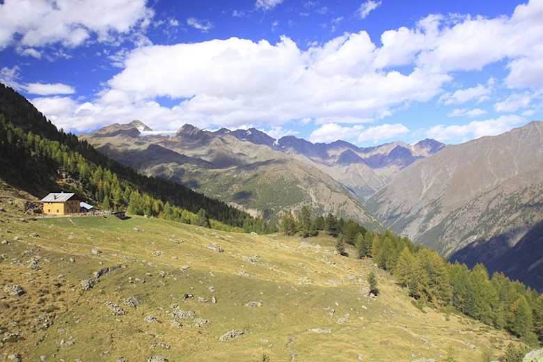Der Aufstieg führt vom Parkplatz von Karthaus (1.327 m) zur Kloster Alm (2.152 m), eine schöne Alm der einstigen Kartäusermönche des Klosters Allerengelberg in Karthaus im Schnalstal.