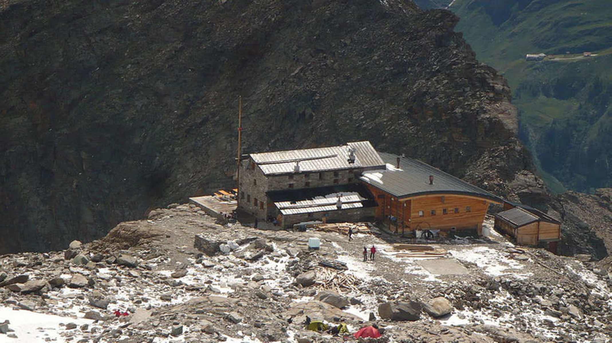Die Mantova Hütte (3.498 m) steht auf der italienischen Seite der Walliser Alpen hoch über dem Aostatal. Die Hütte ist ein idealer Ausgangspunkt für Gletschertouren im Monte-Rosa-Massiv. Hier kann man relativ einfache Viertausender sammeln wie Ludwigshöhe, Parrotspitze oder Vincent-Pyramide. Auch die höchste Hütte in den Alpen die Capanna Regina Margherita (4.554 m) wird von hier erreicht.