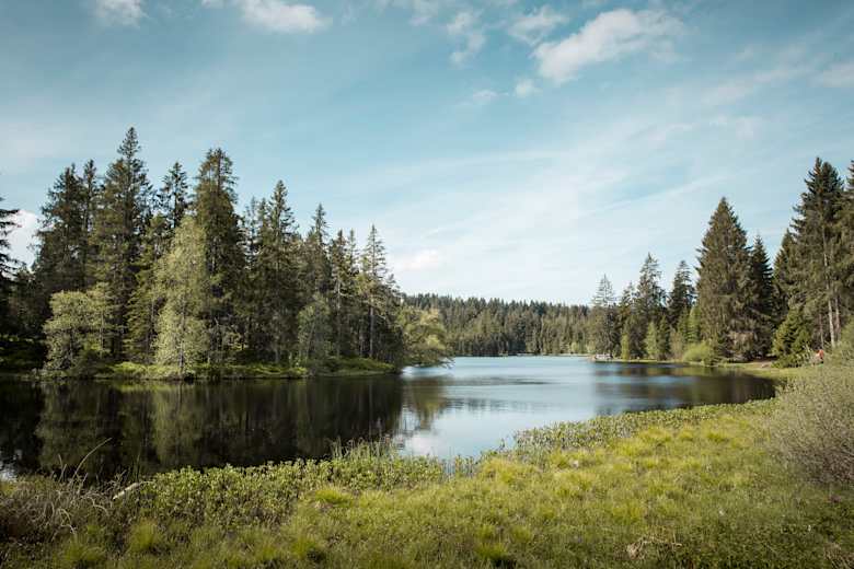 Vom Parkplatz geht man im Uhrzeigersinn dem Etang de Gruère entlang, dem grössten Moorsee der Schweiz. Der See entstand im 17. Jahrhundert, weil hier einst Torf abgebaut wurde und der Teich zudem gestaut wurde, um eine Mühle zu betreiben.