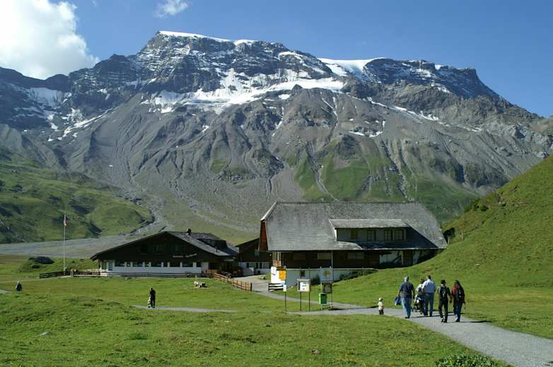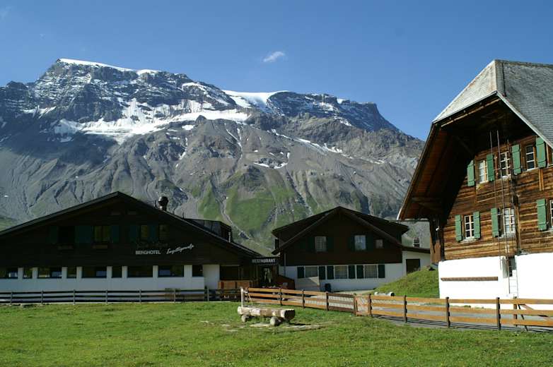Hat man genug gesehen, steigt man langsam weiter auf und quert erneut den Bach. Ostwärts geht es vorbei an den ersten Gasthäusern zur Engstligenalp.