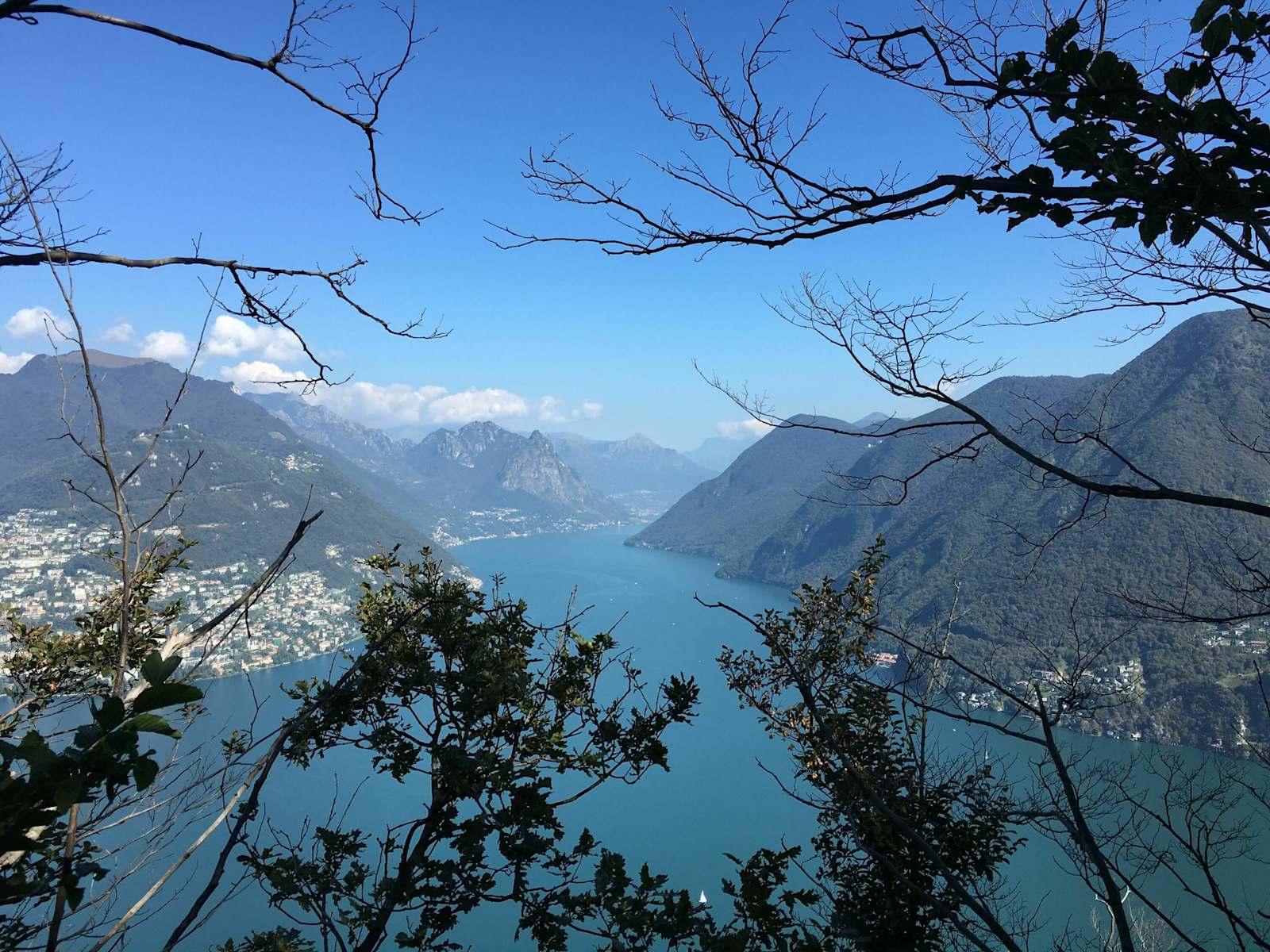 Immer wieder kann man an verschiedenen Aussichtspunkten das wunderschöne Panorama geniessen. Durch ein Waldstück, welches den Monte San Salvatore umgibt, gelangt man nahe des Museums auf den Gipfel (912 m).