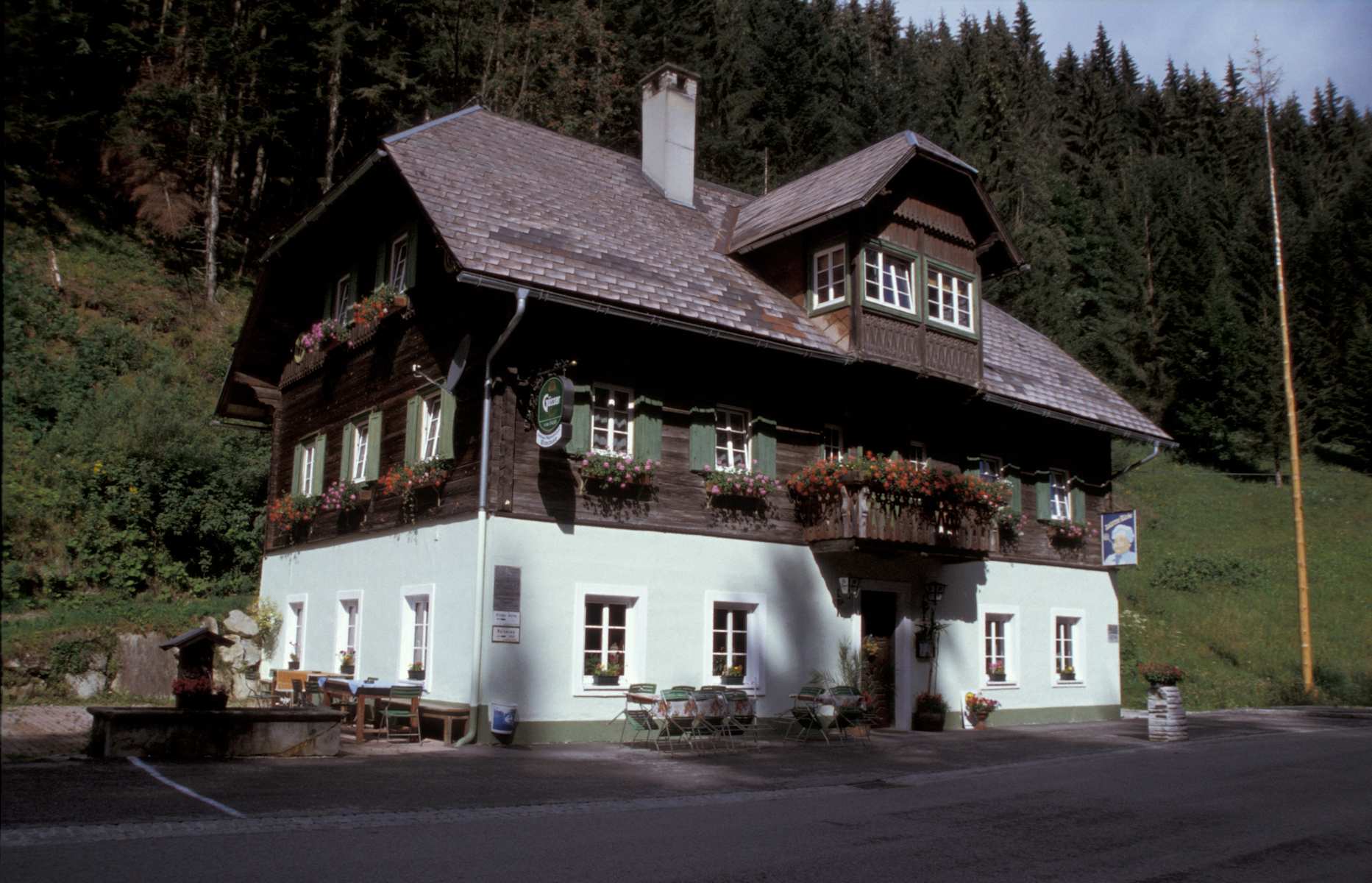 Gemütlich geht es nun aufwärts, immer der Beschilderung folgend. Im oberen Bereich quert man die Mautstraße, die von der Kaiserau auf die Klinkehütte, führt. Schließlich erreicht man die gemütliche Hütte am Fuße des mächtigen Kalblings, der wie ein Schutzpatron über der Hütte wacht.