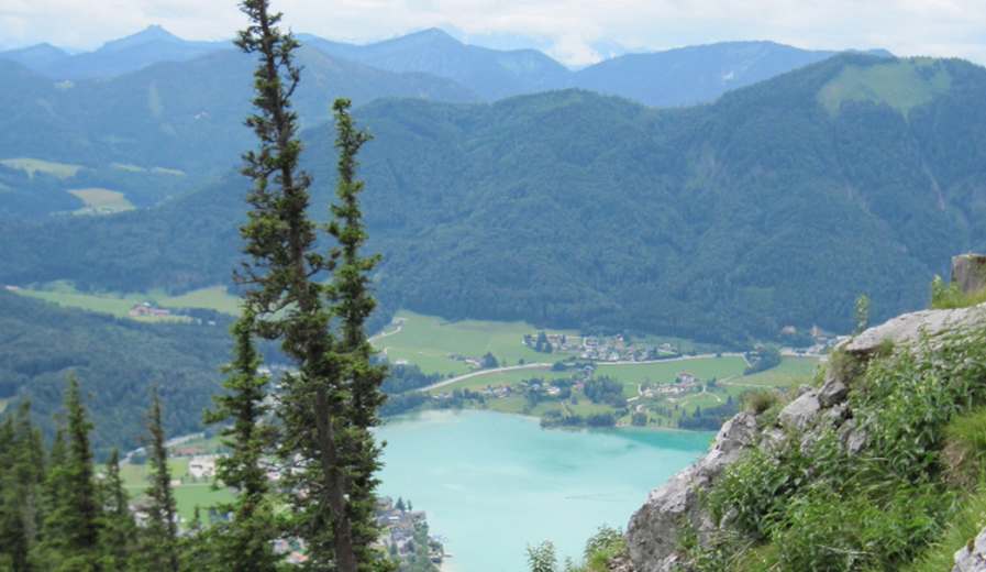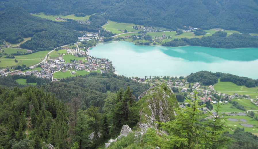 Von Wartenfels wandert man nun über einen Steig durch den Wald und später über Wiesen hinunter zum Fuschlsee, den man beim Hotel Waldhof erreicht. Man hält sich links und wandert gemütlich entlang des Seeufers ins Ortszentrum von Fuschl, dem Etappenziel dieses Tages.