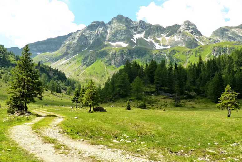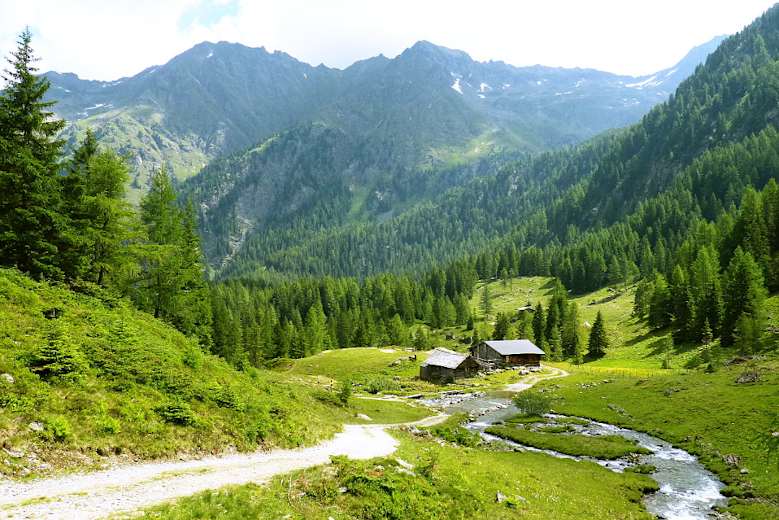 Von der Eschachalm führt der sanft ansteigende Weg entlang des Obertalbaches durch den duftenden Wald bis zur Neualm. Diese befindet sich auf einer wunderschönen Almwiese. Hier wird der Wald nun lichter. Nach der Neualm hält mach sich rechts und steuert entlang von kleineren Wasserfällen und über das Neualmkar direkt auf die Kreinprechthütte zu. Am Ziel ist man im beeindruckenden Talkessel umgeben von Brettspitze, Zinkwand, Vetternspitze und Krukeck, wo man die Natur so richtig genießen kann.