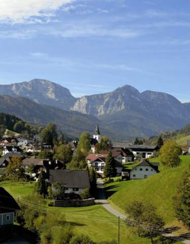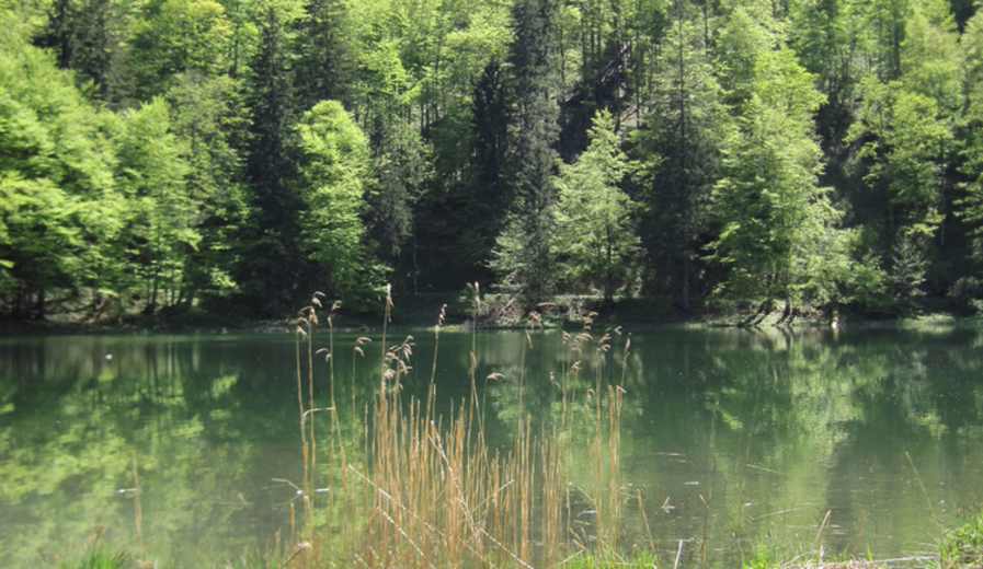 Von hier führt eine Forststraße wieder zur Landstraße, die man überquert. Zum Schluss folgt eine gemütliche Wanderung auf einem angenehmen Weg neben der Taugl bis zum Etappenort Hintersee.