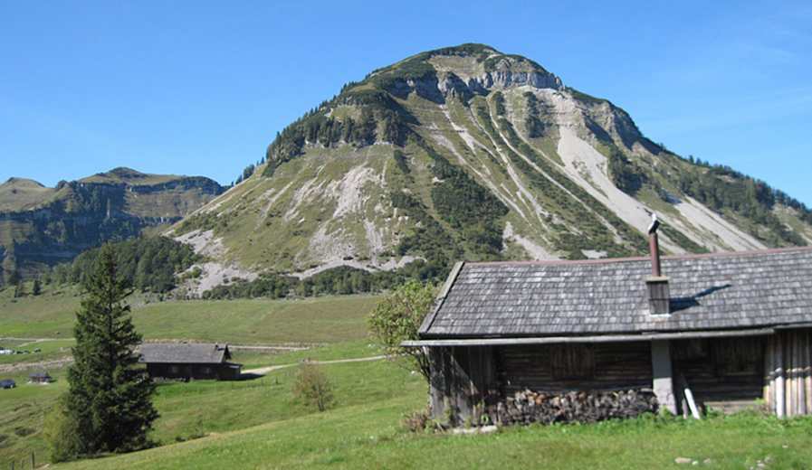 Über den flachen Rücken geht es nun weiter in Richtung Nordosten. Hier kann man auf dem Rücken weiter gehen und damit auch einen weiteren schönen Gipfel mitnehmen, das Osterhorn mit 1.746 m. Für Hin- und Rückweg benötigt man ca. 20 Minuten.