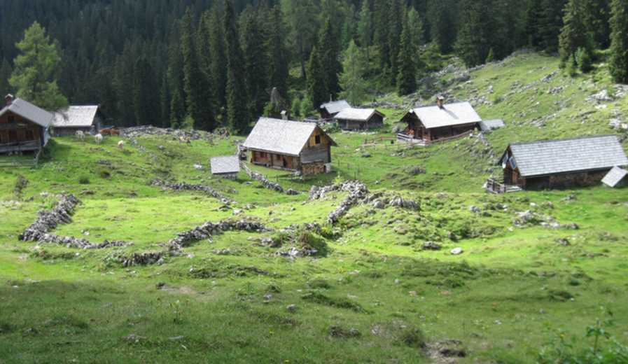 Von der Gablonzer Hütte steigt man anfangs mäßig steil über die Almwiesen bergab ab, bis rechts ein schmaler, steiler Steig durch den schönen Bergwald zur Krautgartenalm und weiter zum Vorderen Gosausee abzweigt.