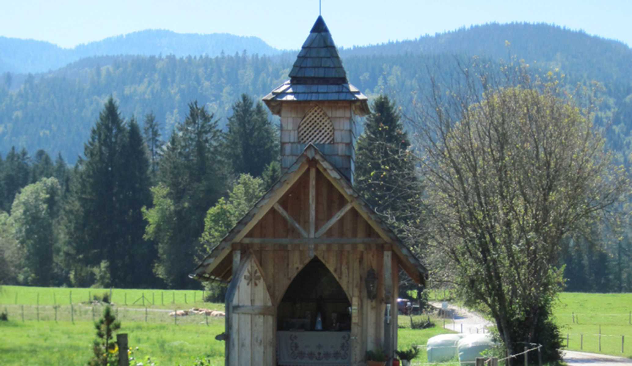 Beim Sägewerk hält man sich rechts und folgt der Asphaltstraße kurz bergauf, dann flach durch die Wiesen zu einer Wegverzweigung. Links steht 100 m entfernt die Jausenstation Stieger. Die Wanderroute führt nun auf einer Almstraße meist durch den Wald hinauf zur sehr schön gelegenen Steinitzenalm Jausenstation (auf ca. 980 Höhenmeter).