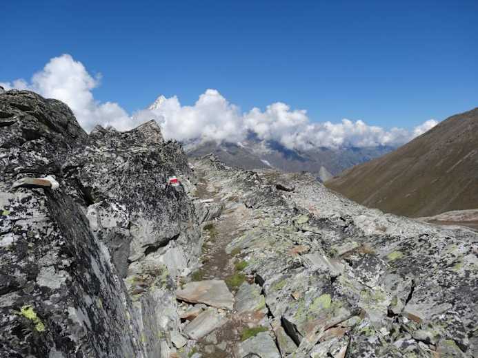 Steil bergab oder steil bergauf, je nach dem wie man es mag, verläuft diese Wanderung entlang vom steinigen Ritzengrat vom Unterrothorn bei Zermatt (Wallis). Unterwegs bieten sich Ausblicke ins einsame Tufterkummetal und eventuell sichtet man auf dieser anspruchsvoller Bergwanderung ein paar Gämsen.